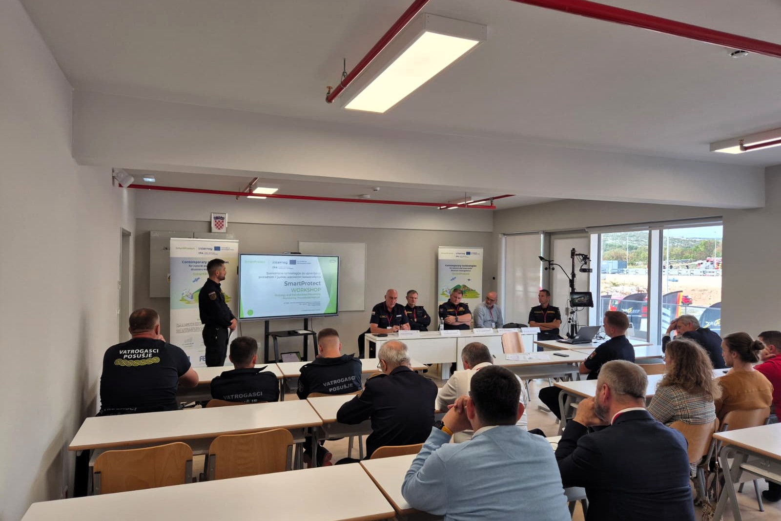 As part of the project SmartProtect – Contemporary Technologies for Natural and Man-Made Disasters Management, a workshop was held on October 17, 2025, within Work Package 2 – Activity 2.1 “Defining a Joint Strategy and Procedures for Preventive Activities”, as part of the 15th Autumn Firefighting Professional Conference of the Croatian Firefighting Association, at the VACETRAS Firefighting Center in Vučevica.